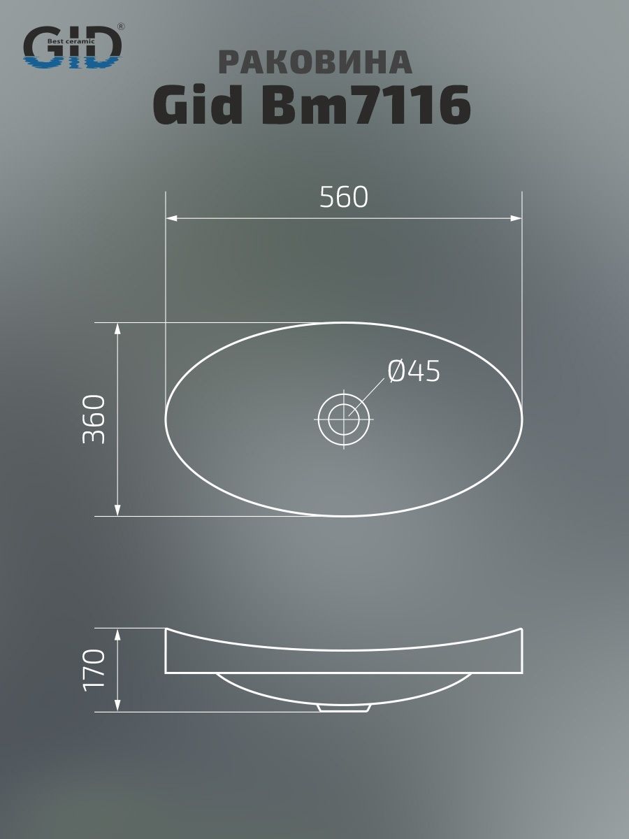 Integrado —встраиваемые раковины, которые объединяют в себе испанский стиль и международное признание качества. Встраиваемая сверху раковина GiD Bm7116 стильная и современная модель из высококачественной керамики с черным матовым покрытием, благодаря чему раковину легко интегрировать в любую ванную комнату, создавая уютную атмосферу. Отсутствие отверстия под смеситель подчеркивает минималистичный стиль, а накладной способ монтажа на столешницу облегчает установку и позволяет создать современный облик ванной комнаты. Овальная форма модели идеально сочетается с любым интерьером ванной комнаты.