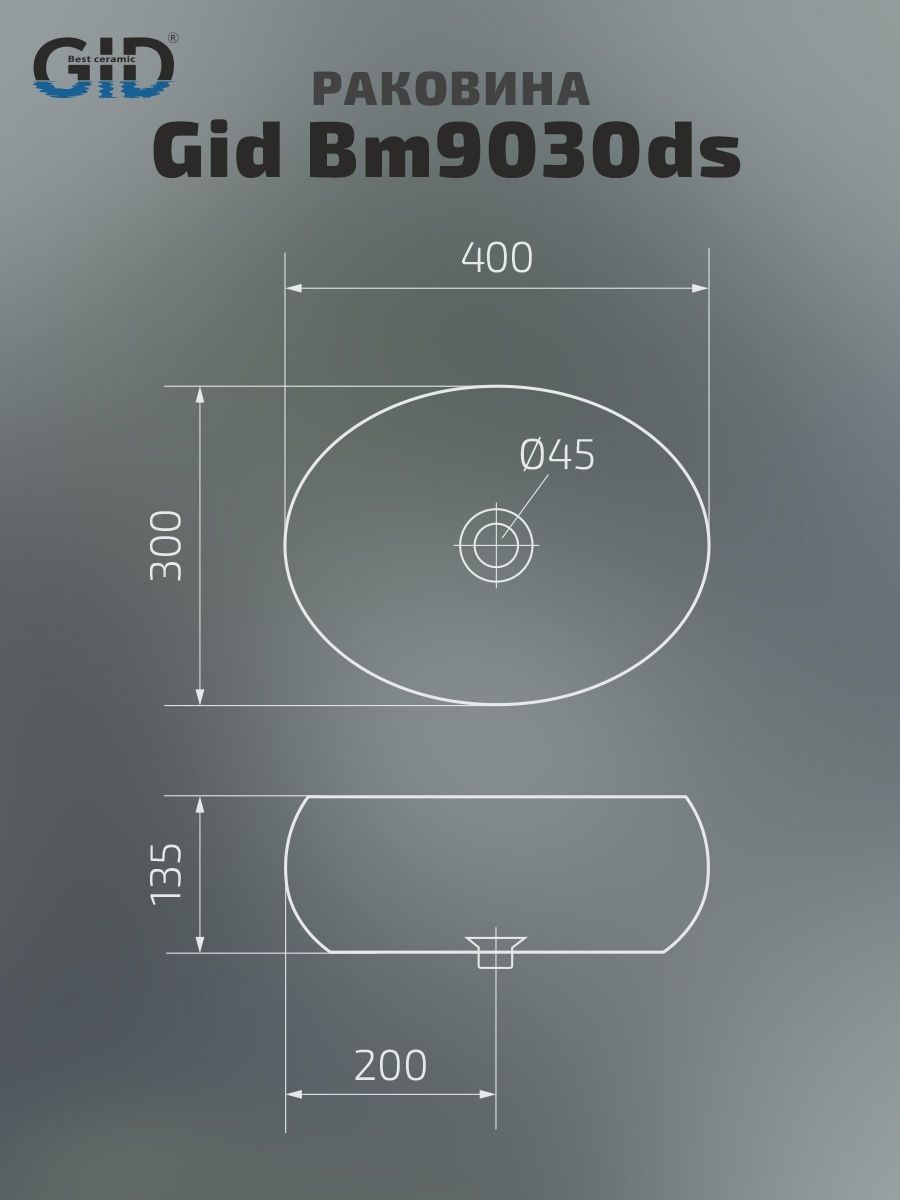 Раковина Gid Bm9030ds 53384 накладная черная матовая 40x30x13.5