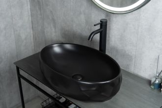 Серия Lago овальной формы — это испанское качество, соответствующее современным европейским требованиям. Накладная раковина GiD BM9030wx— идеальный выбор для тех, кто ценит стиль и минимализм в интерьере. Матовая черная керамика придаст вашей ванной комнате современный и неповторимый акцент. Овальная форма создает ощущение легкости и гармонии, визуально расширяя пространство. Накладная конструкция не только упрощает монтаж, но и позволяет сэкономить место на столешнице. Это универсальное и востребованное решение для современных проектов.