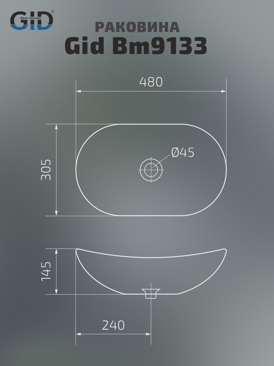 Раковина Gid Bm9133 53352 накладная черная матовая 48x30.5x14.5 купить