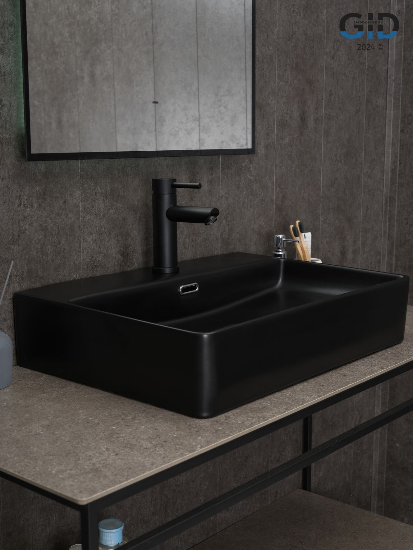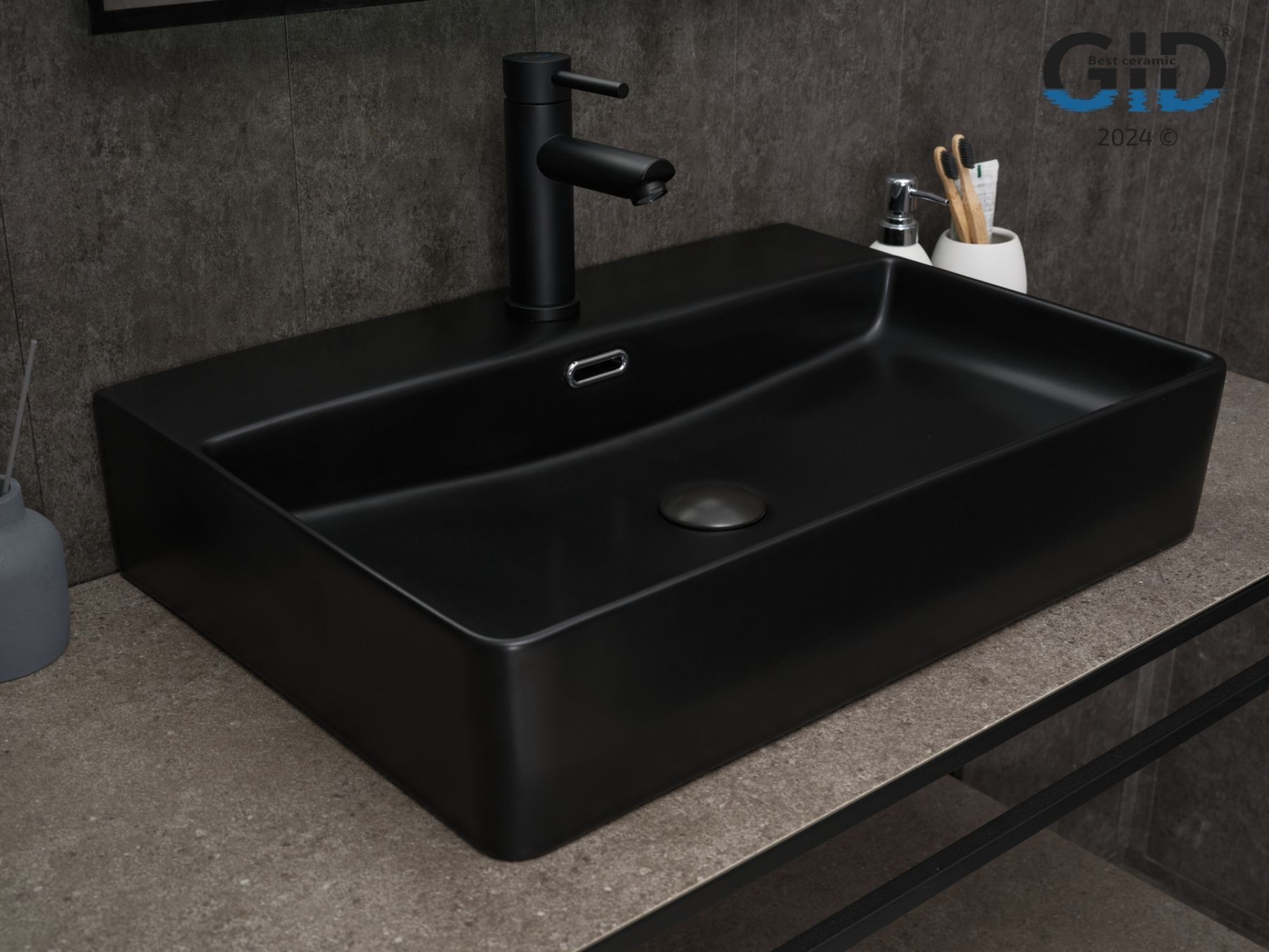 Раковина Gid Bm9256 53375 накладная черная матовая 60x42x14 купить