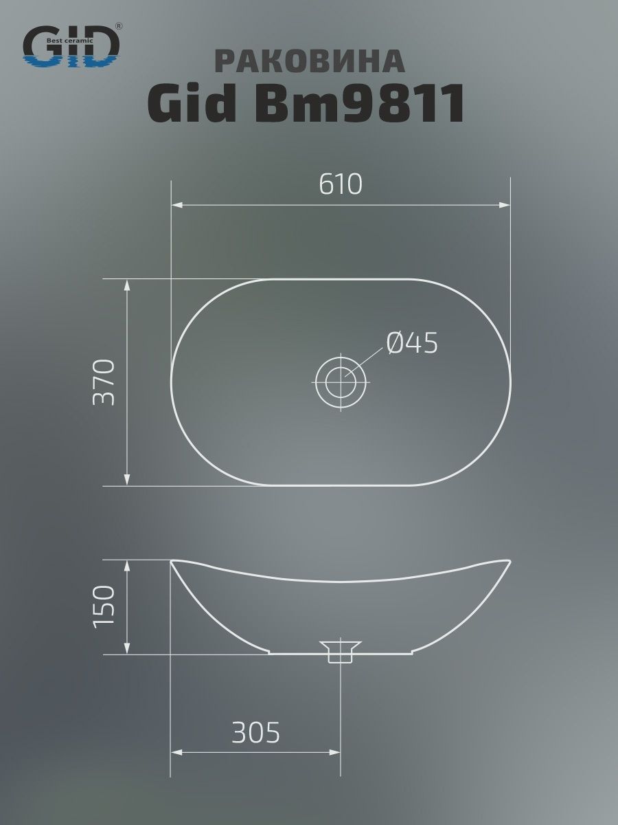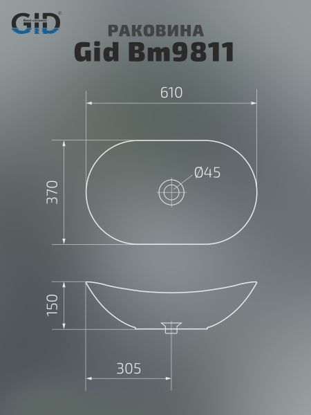 Раковина Gid Bm9811 53337 накладная черная матовая 61x37x15 купить