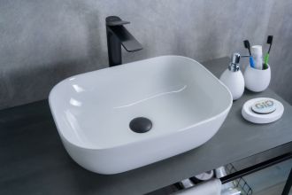 Серия Geometrico с прямоугольной формой: стиль и практичность с испанским качеством и европейскими стандартами. Накладная раковина GiD D1333 без отверстия под смеситель, изготовлена из мелкопористой керамики в белом глянцевом цвете. Гладкое стекловидное покрытие позволяет раковине быть устойчивой к загрязнениям. Прямоугольная форма и компактные размеры обеспечивают комфортное использование и легкую установку.
