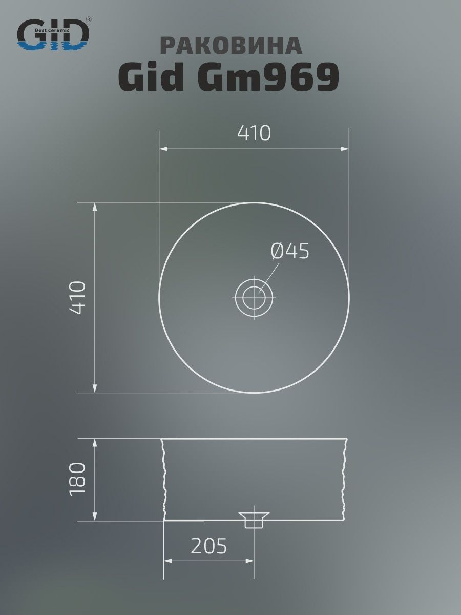 Раковина Gid Gm969 53335 накладная серая матовая 41x41x18 купить