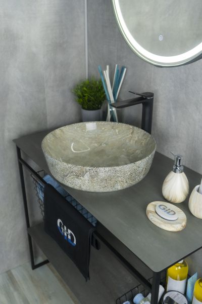 Раковины серии Esfera с круглой чашей — это эталон европейских стандартов и испанского мастерства. Раковина накладная GID Mnc498 — это стильная модель, изготовленная из высококачественной керамики. Она имеет круглую форму, что делает её практичным решением для современных ванных комнат. Дизайн раковины имитирует глянцевую поверхность натурального камня, придавая интерьеру элегантность и утончённость. Раковина устанавливается накладным способом на столешницу, что подчёркивает её современный стиль. Благодаря отсутствию отверстия под смеситель раковина позволяет реализовать различные дизайнерские решения по размещению смесителя. Раковина предназначена для бытового использования и гармонично впишется в любой интерьер ванной комнаты.