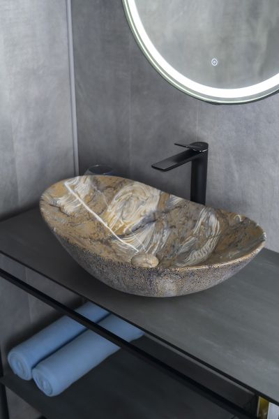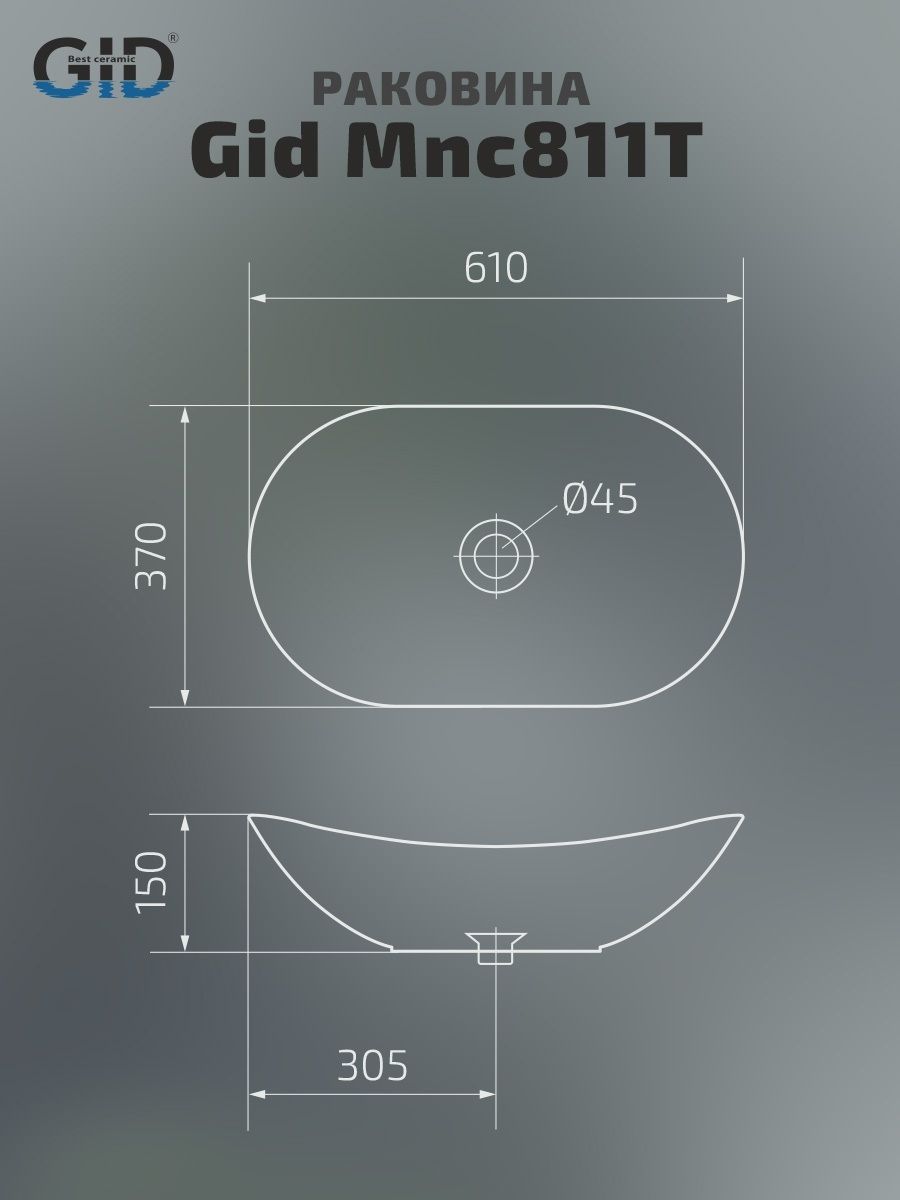 Серия Lago овальной формы — это испанское качество, соответствующее современным европейским требованиям. Раковина накладная GiD Mnc811T— стильная и современная модель, изготовленная из высококачественной керамики с глянцевой поверхностью, создающей эффект натурального камня. Её овальная форма и минималистичный дизайн идеально подходят для ванных комнат в любом стиле, от классического до современного. Модель предназначена для накладной установки на столешницу, что позволяет подчеркнуть изысканность интерьера. Отсутствие отверстия под смеситель позволяет выбрать любую модель настенного или встроенного смесителя.