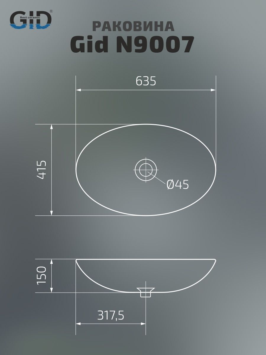 Раковина Gid N9007 51207 накладная белая 63.5x41.5x15 купить