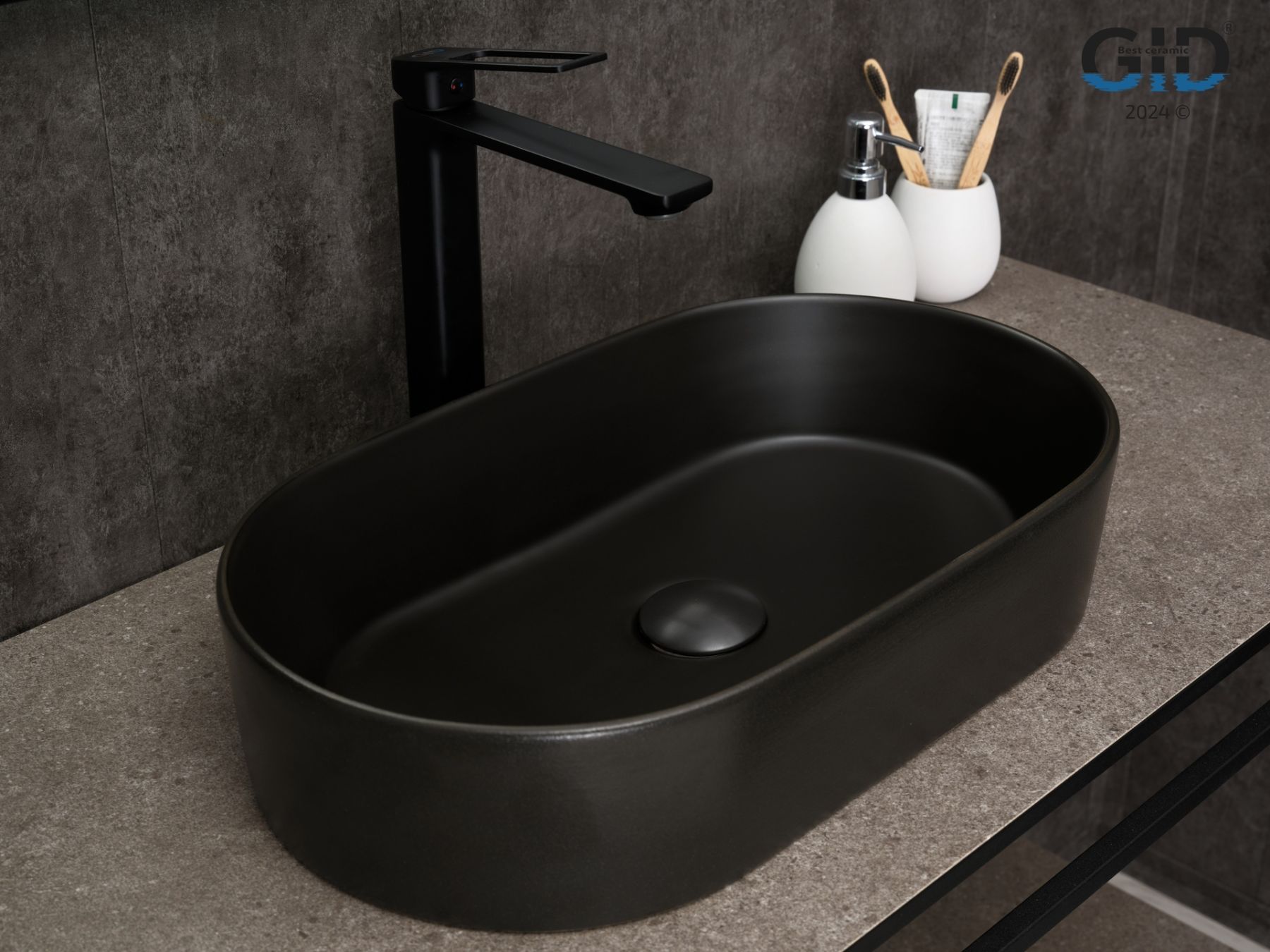 Серия Lago овальной формы — это испанское качество, соответствующее современным европейским требованиям. Раковина накладная GiD N9020bg — идеальный выбор для тех, кто ценит стиль и минимализм в интерьере. Матовая черная керамика с графитовым покрытием придаст вашей ванной комнате современный и неповторимый акцент. Овальная форма создает ощущение легкости и гармонии, визуально расширяя пространство. Накладная конструкция не только упрощает монтаж, но и позволяет сэкономить место на столешнице. Благодаря отсутствию отверстия под смеситель раковина позволяет реализовать различные дизайнерские решения по размещению смесителя. Это универсальное и востребованное решение для современных проектов.