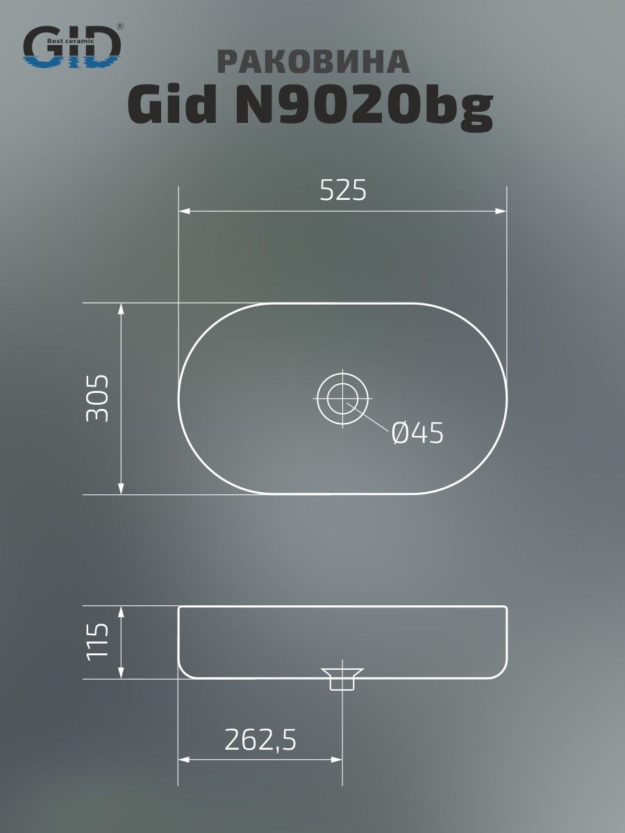 Раковина Gid N9020bg 53379 накладная черная графит 52.5x30.5x11.5 купить