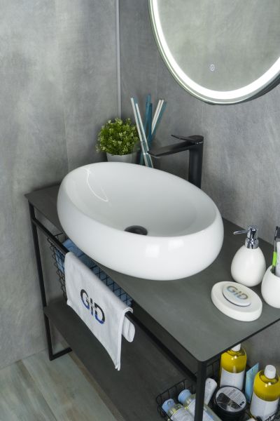 Серия Lago овальной формы — это испанское качество, соответствующее современным европейским требованиям. Накладная раковина GiD N9030а — сочетание элегантного дизайна и практичности для вашей ванной комнаты. Изготовлена из мелкопористой керамики с белым глянцевым покрытием, она придаст интерьеру свежесть и утонченность. Овальная форма обеспечивает оптимальное пространство для комфортного использования. Отсутствие отверстия под смеситель подчеркивает минималистичный стиль, а накладной способ монтажа на столешницу облегчает установку и позволяет создать современный облик ванной комнаты.
