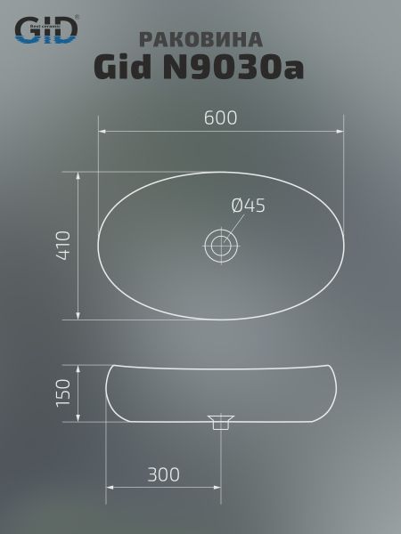 Раковина Gid N9030a 51114 накладная белая 60x41x15 купить