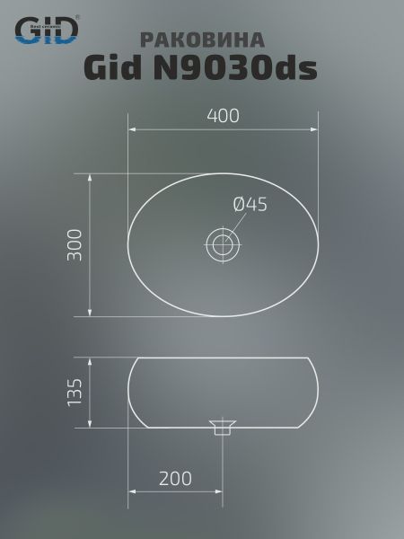Раковина Gid N9030ds 51235 накладная белая 40x30x13.5 купить