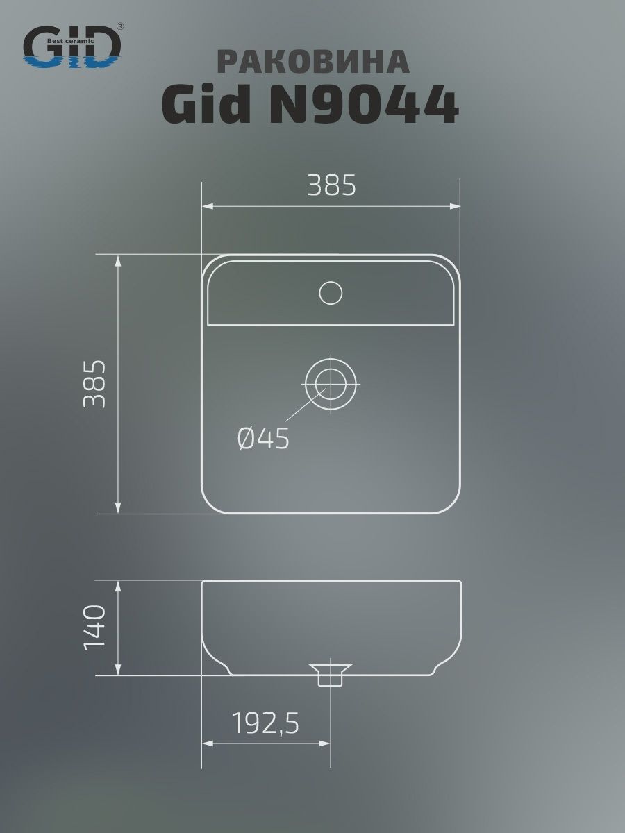 Раковина Gid N9044 51165 накладная белая 38.5x38.5x14 купить