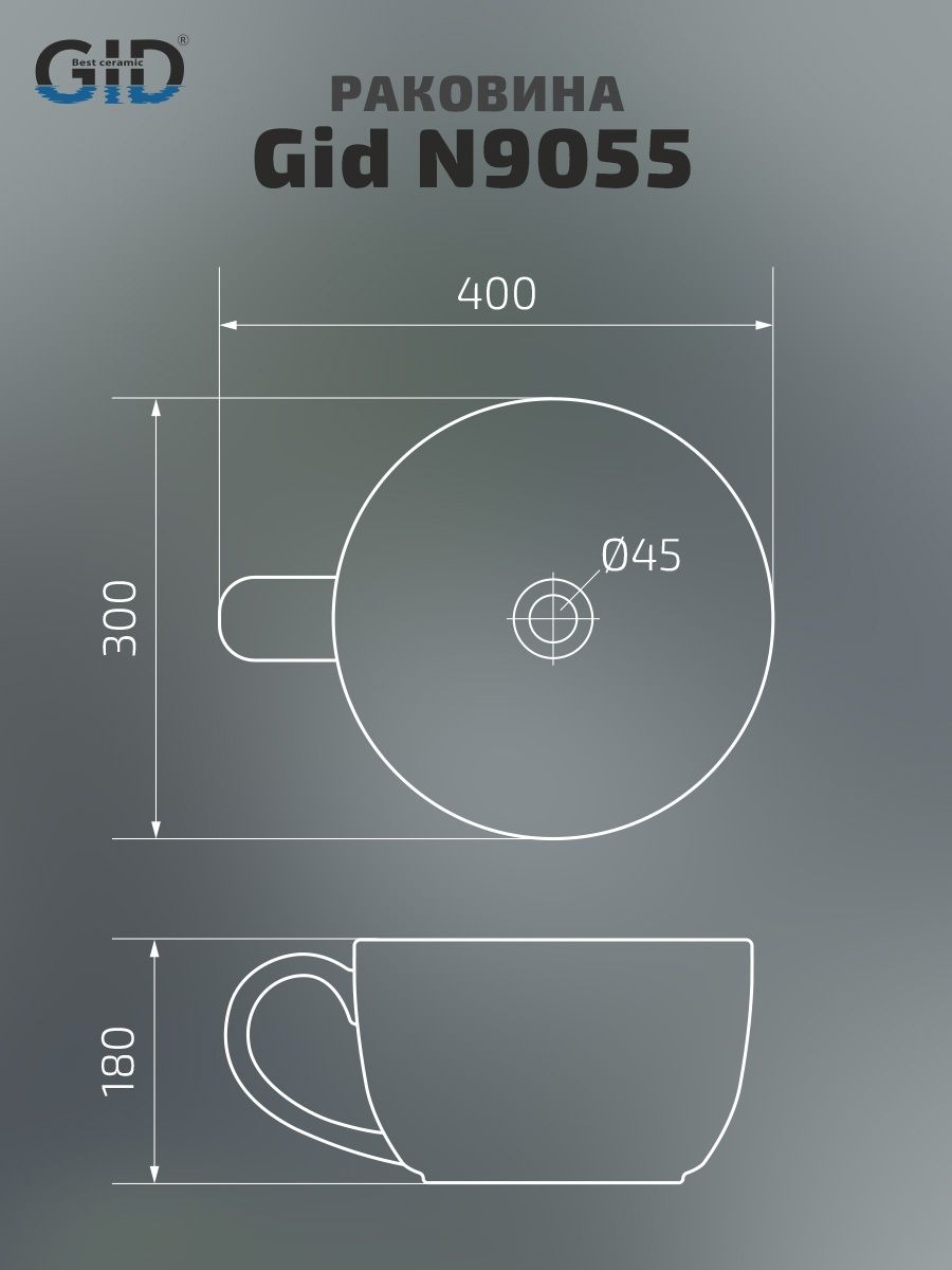 Раковина Gid N9055 51186 накладная белая 40x30x18 купить