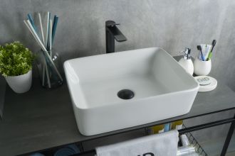 Серия Geometrico с прямоугольной формой: стиль и практичность с испанским качеством и европейскими стандартами. Накладная раковина GiD N9103 без отверстия под смеситель, изготовлена из мелкопористой керамики в белом глянцевом цвете. Гладкое стекловидное покрытие позволяет раковине быть устойчивой к загрязнениям. Прямоугольная форма и компактные размеры обеспечивают комфортное использование и легкую установку.