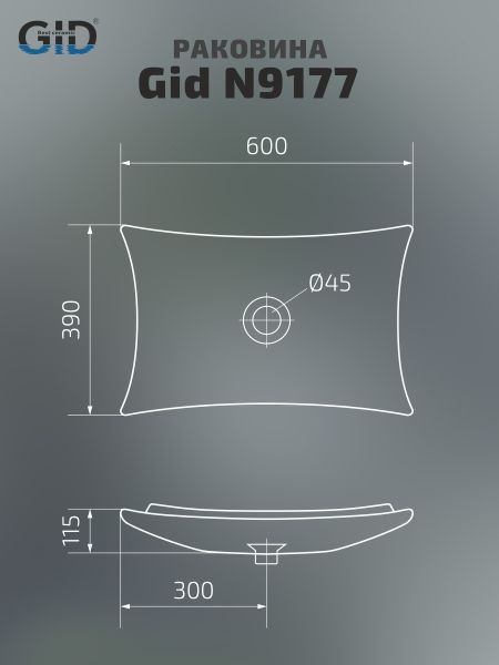 Раковина Gid N9177 51170 накладная белая 60x39x11.5 купить