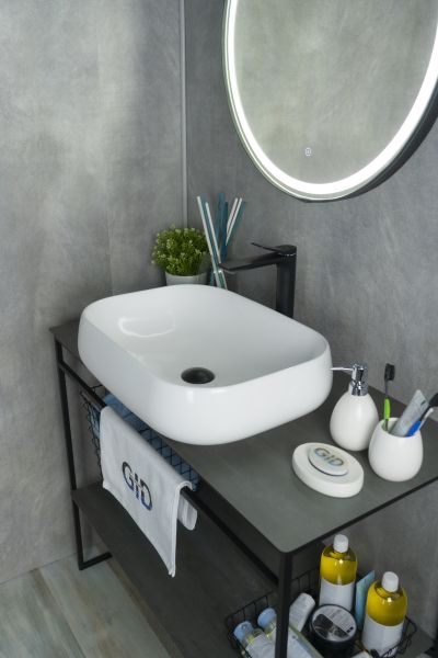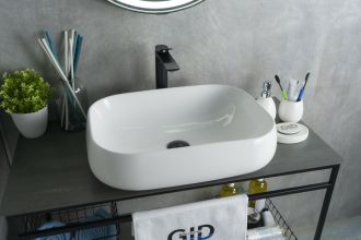 Серия Geometrico с прямоугольной формой: стиль и практичность с испанским качеством и европейскими стандартами. Накладная раковина GiD N9243 — сочетание элегантного дизайна и практичности для вашей ванной комнаты. Изготовлена из мелкопористой керамики с белым глянцевым покрытием, она придаст интерьеру свежесть и утонченность. Прямоугольная форма обеспечивает оптимальное пространство для комфортного использования. Отсутствие отверстия под смеситель подчеркивает минималистичный стиль, а накладной способ монтажа на столешницу облегчает установку и позволяет создать современный облик ванной комнаты.