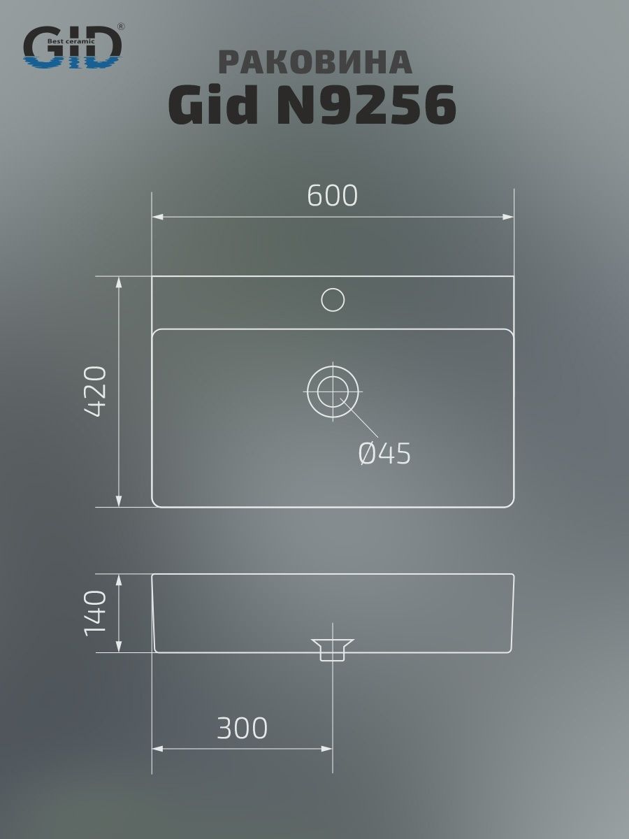 Раковина Gid N9256 51172 накладная белая 60x42x14 купить