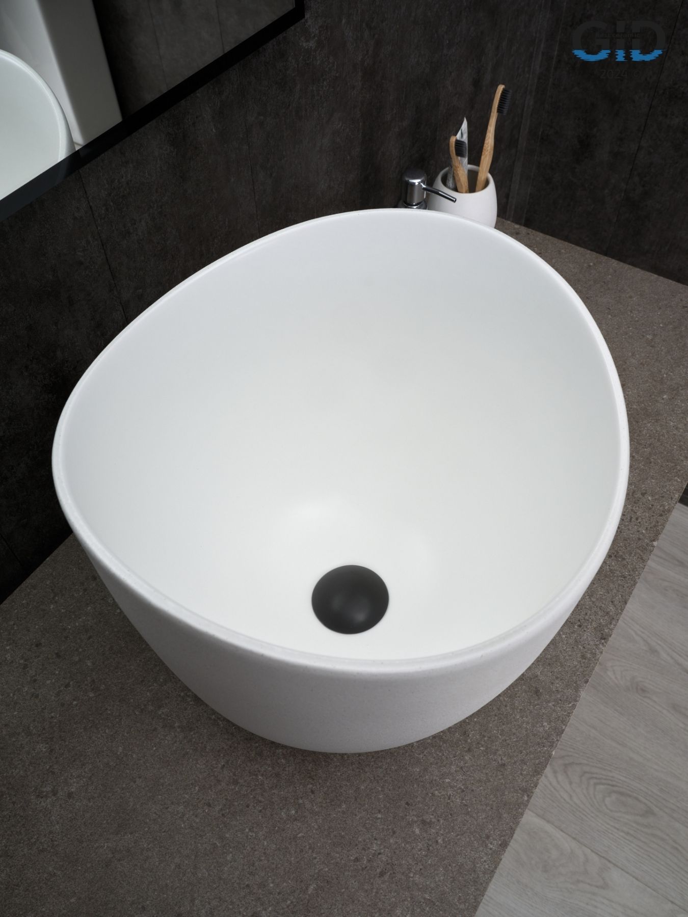 Раковина Gid N9303wg 51221 накладная белый матовый / белый графит 36x36x32