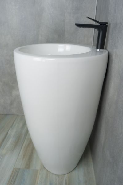 Напольная раковина GiD Nb133 изготовлена из прочной мелкопористой керамики с глянцевым белым покрытием, придающим интерьеру свежесть и утонченность. Круглая форма сочетает в себе комфорт использования и стильный внешний вид. Данная модель имеет отверстие для смесителя, что облегчает её интеграцию в дизайн ванной комнаты. Напольный монтаж обеспечивает надежность и практичность в эксплуатации.