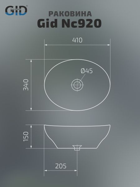 Раковина Gid Nc920 52231 накладная черная глянцевая 41x34x15 купить
