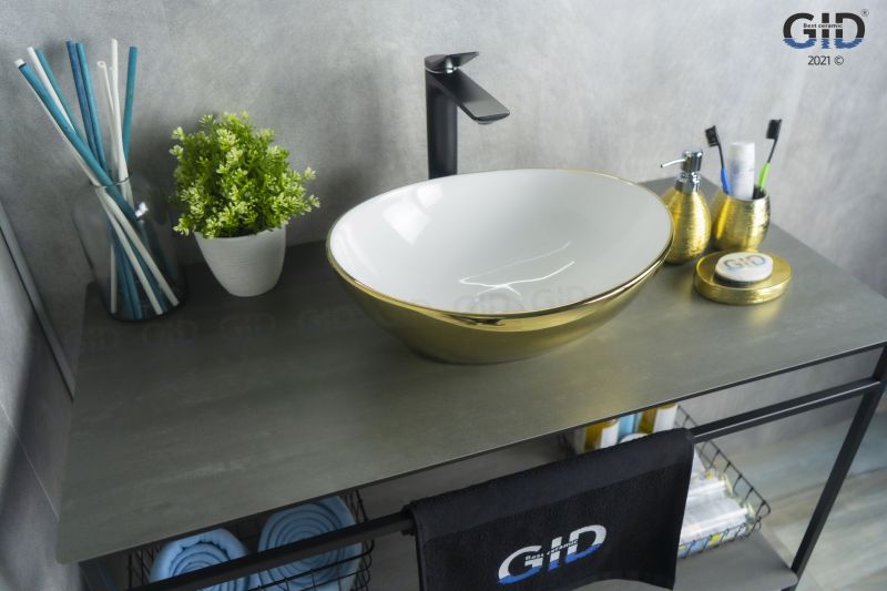 Раковина Gid Nc999 52229 накладная белая / золото 41x34x15