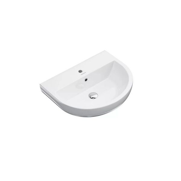 Подвесная раковина в белом глянцевом цвете с переливным отверстием и хромированной накладкой, ши... Подробнее