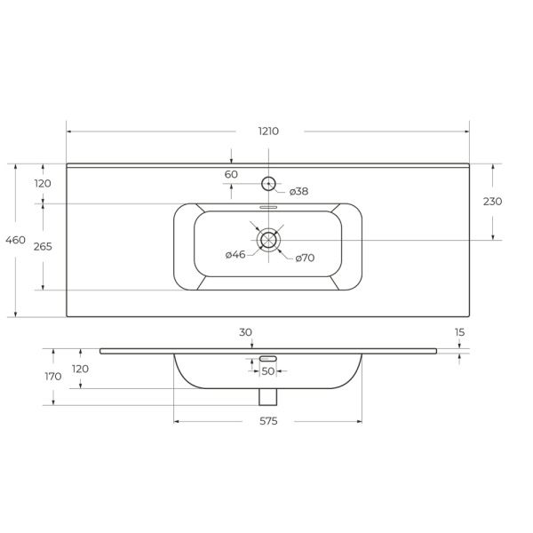 Раковина керамическая CEZARES 120 см, CZR-8095-120 белый