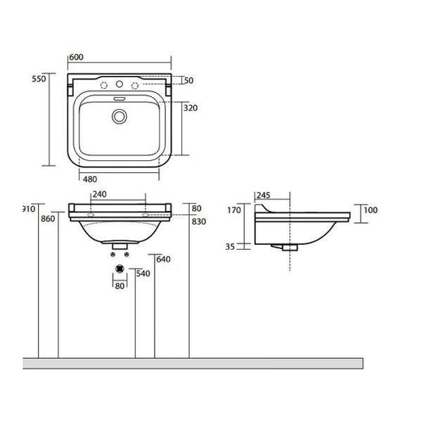 Раковина Kerasan Waldorf 4140K1bi/cr*1 Белая 60 смХарактеристики:Цвет: белый.