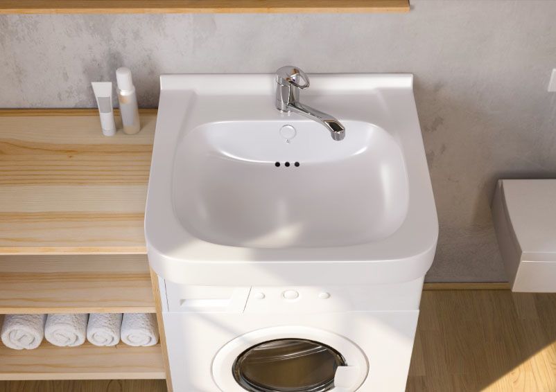 Такие раковины предназначены для установки над стиральными машинками таких известных брендов как: Eurosoba, Zanussi, Candy Aquamatic и Electrolux.