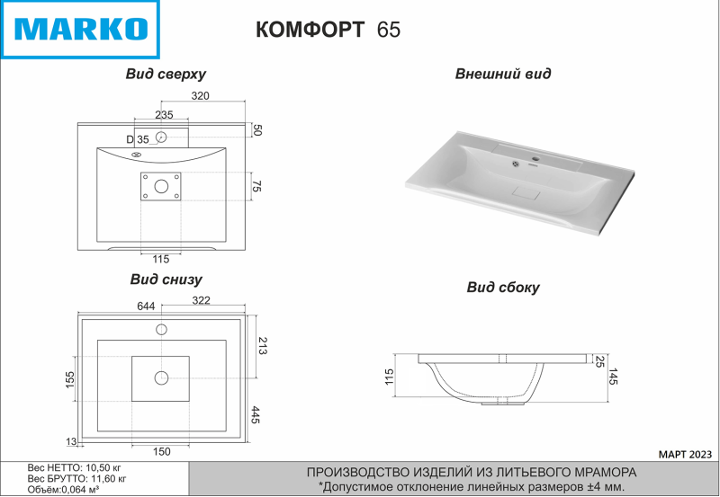 Раковина Marko Комфорт 5001650 65 см купить
