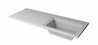 Вместительная столешница служит дополнительной плоскостью, на которой можно поместить элементы декора или любые необходимые предметы. Литьевой мрамор, из которого сделана раковина, экологичен и совершенно безвреден.