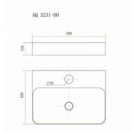 Раковина Aquatek 50 х 42 см, накладная, белая, AQ3231-00Накладная раковина прямоугольной формы Aquatek AQ3231-00 предназначена для монтажа на столешницу, обладает небольшими габаритами средней величины. Эта раковина легко подойдет и составит стильный комплект с тумбочкой шириной 50 см и столешницей от 60 см. Удобна и функциональна, имеет классический, проверенный временем дизайн, одно отверстие под слив и под смеситель, расположенные по центру. Выполнена из гигиеничного и практичного санфаянса, гарантия производителя 25 лет. Ее безупречный внешний вид украсит интерьер любой ванной комнаты.Ширина - 50 см