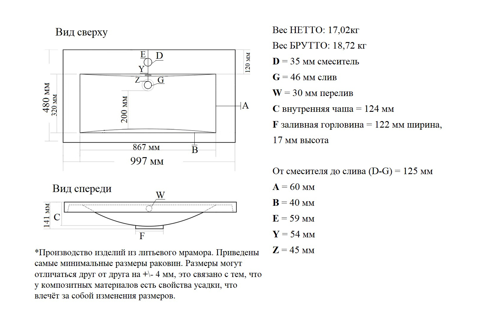 Материал: литьевой мрамор