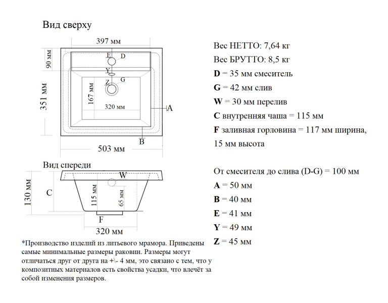Материал: литьевой мрамор