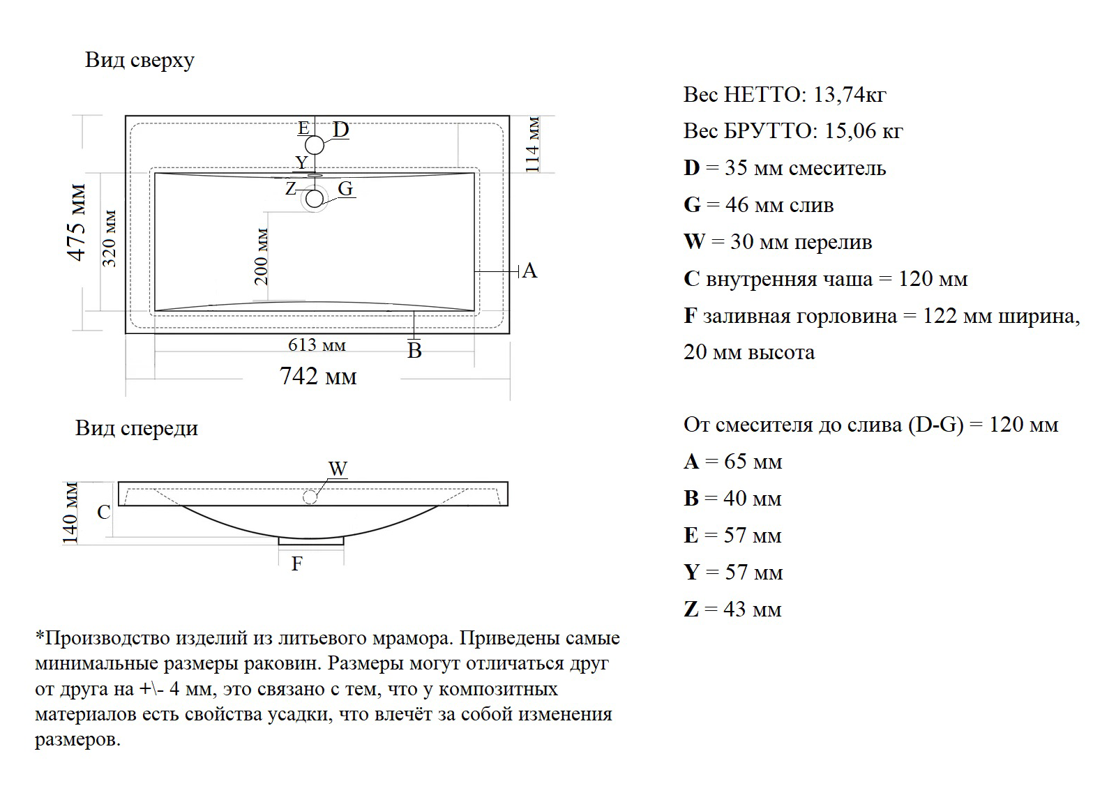 Материал: литьевой мрамор
