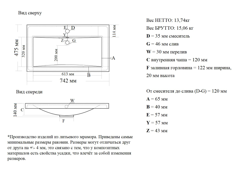 Размер, мм (ШxГxВ): 742x475x125