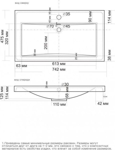 Отверстия под смеситель:1