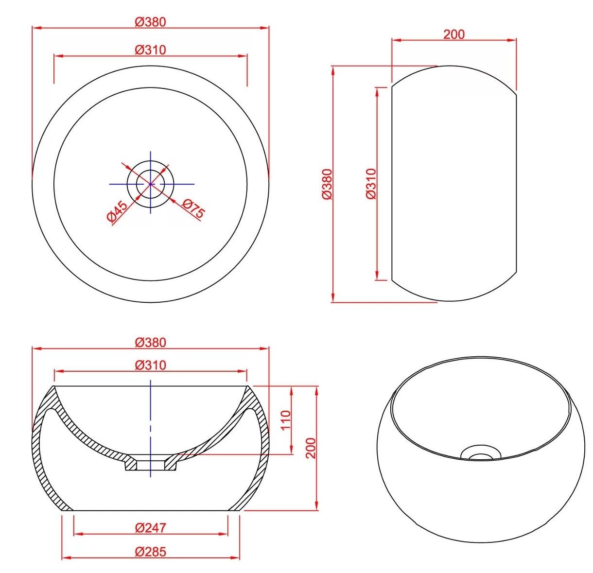 Раковина Montebianco Palla 12033 38см белый