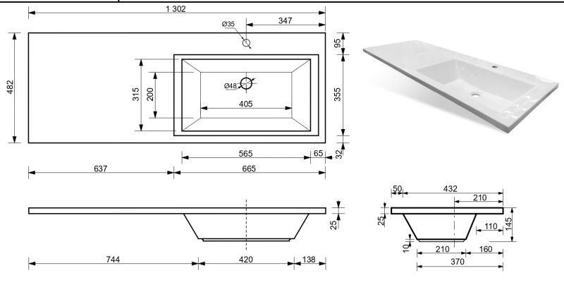 Раковина над стиральной машиной Эстет Даллас ФР-00002167 П 130см белый