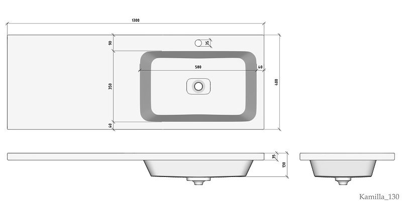 Одно отверстие под смеситель по центру чаши