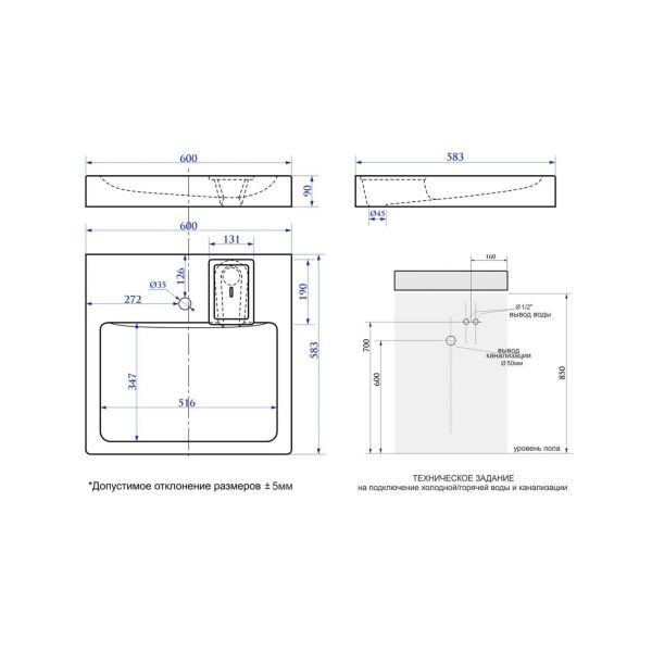 Раковина над стиральной машиной Maretti KA13SM26-844, белая. Материал: литьевой мрамор. Размер: 60x58,3x9. Форма: квадратная.
