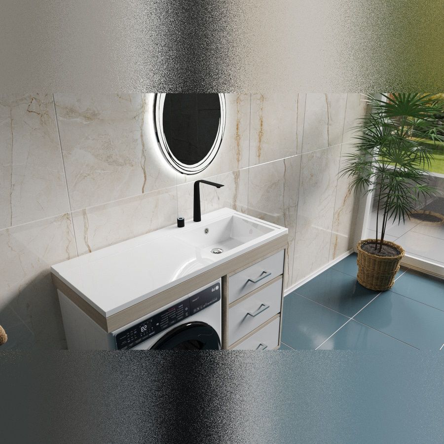 Раковина над стиральной машиной Maretti UM13SM93-844, белая. Материал: литьевой мрамор. Размер: 110x48x15,4. Форма: прямоугольная. Крыло слева.