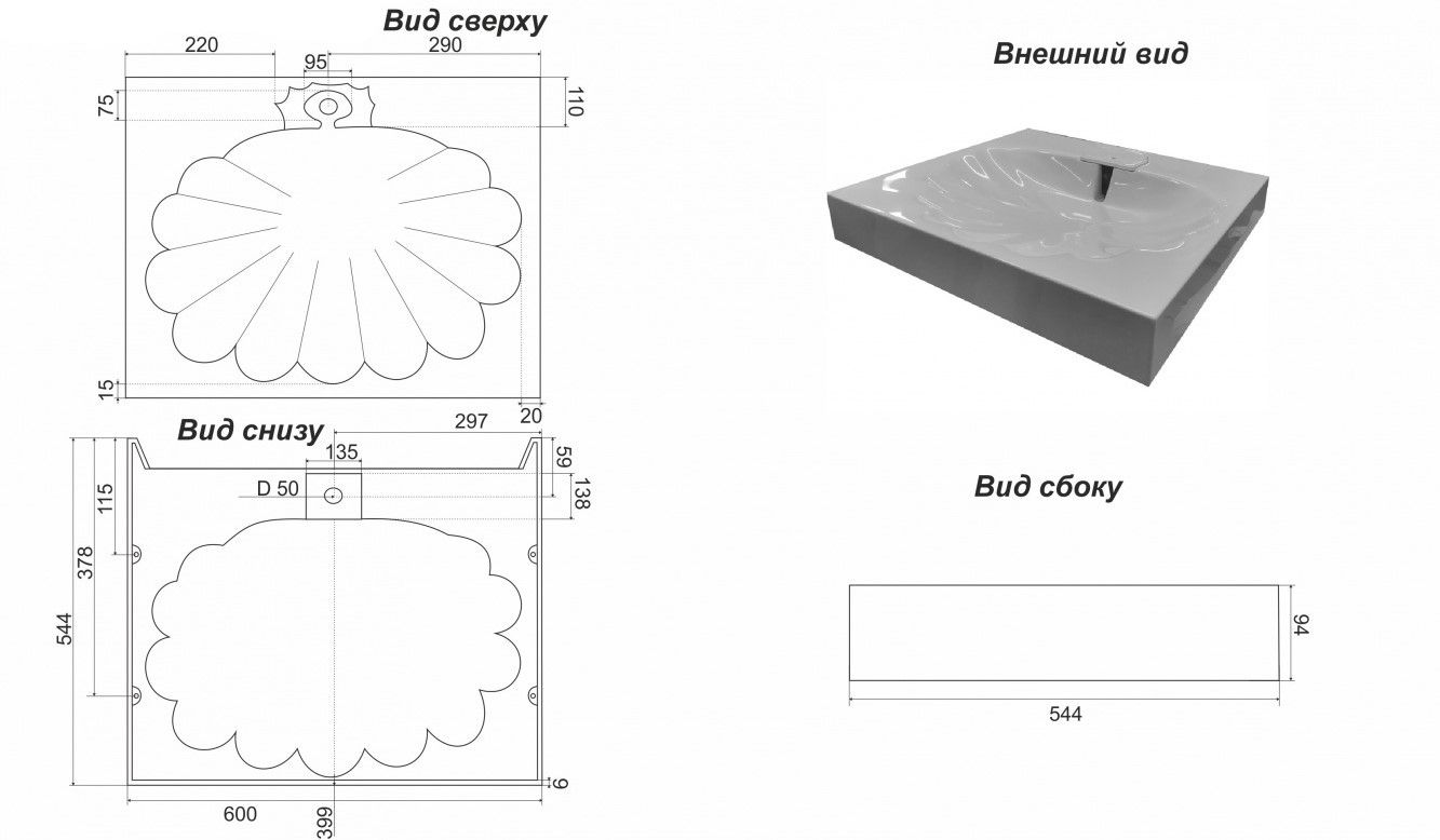Раковина в ванную комнату для установки над стиральной машинкой. Крепится на кронштейны, которые входят в комплект поставки. Верхний слой высококачественного гелькоута образует декоративно-защитное покрытие. Отверстие под смеситель может быть сделано самостоятельно, как справа, так и слева. Для этого в комплекте идет фреза для сверления.Основные характеристики: