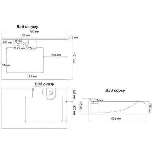 Ультрасовременная раковина в ванную комнату для установки над стиральной машинкой с щелевым сливом. Крепится на кронштейны, которые входят в комплект поставки. Верхний слой высококачественного гелькоута образует декоративно-защитное покрытие.