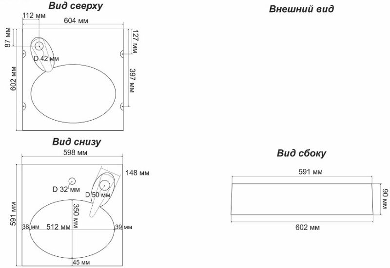 - Размер: 604х602х90 мм