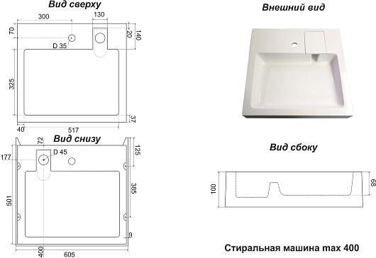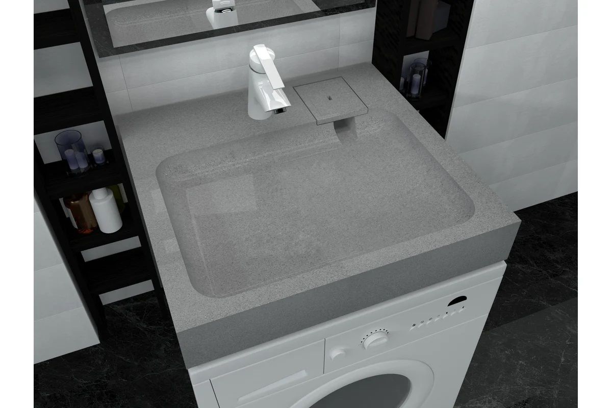 Раковина в ванную комнату для установки над стиральной машинкой очень современного цвета белого мрамора. Крепится на кронштейны, которые входят в комплект поставки. Верхний слой высококачественного гелькоута образует декоративно-защитное покрытие.