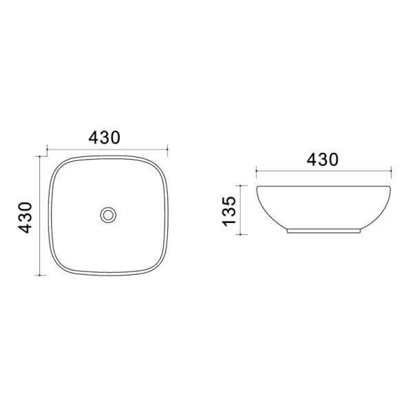Раковина накладная Azario 43х43х13.5 фаянс (AZ41288)