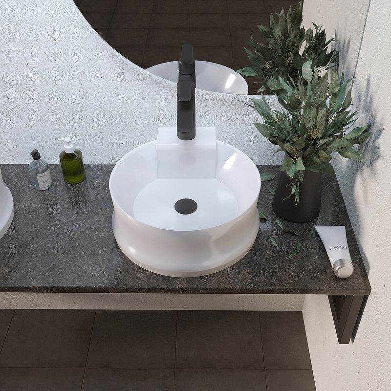 Накладная круглая раковина Omega 40 встраивается на мебель и в столешницу. Донный клапан приобретается отдельно. Верхний слой - антибактериальное декоративно-защитное покрытие.