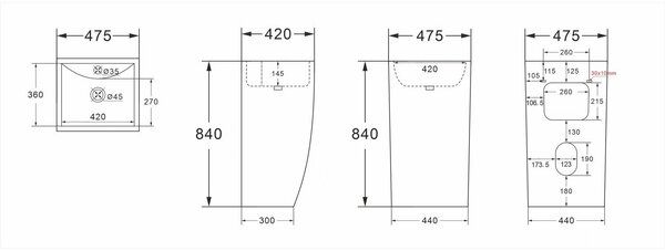 Раковина напольная AZARIO COMELLA 48 AZ-314 отдельностоящая прямоугольная, белый 480х420х830 Подробнее